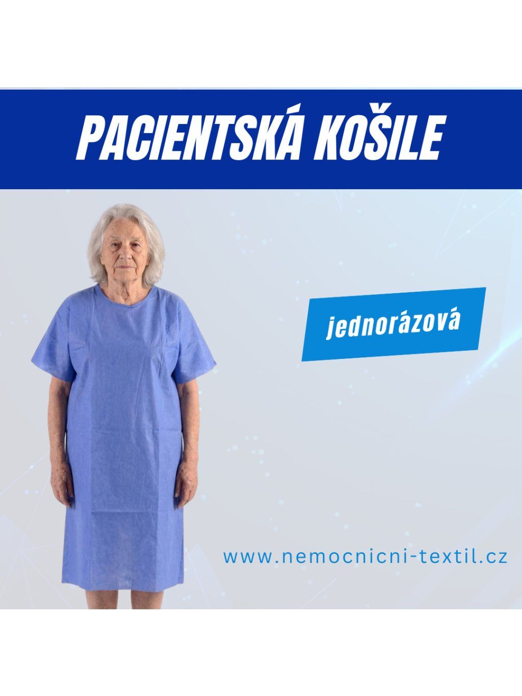 Zajistěte maximální hygienický standard a pohodlí pro své pacienty i personál. Naše jednorázová nemocniční košile typu „anděl“ je navržena speciálně pro potřeby chirurgických oddělení, zákrokových sálů a diagnostických center.